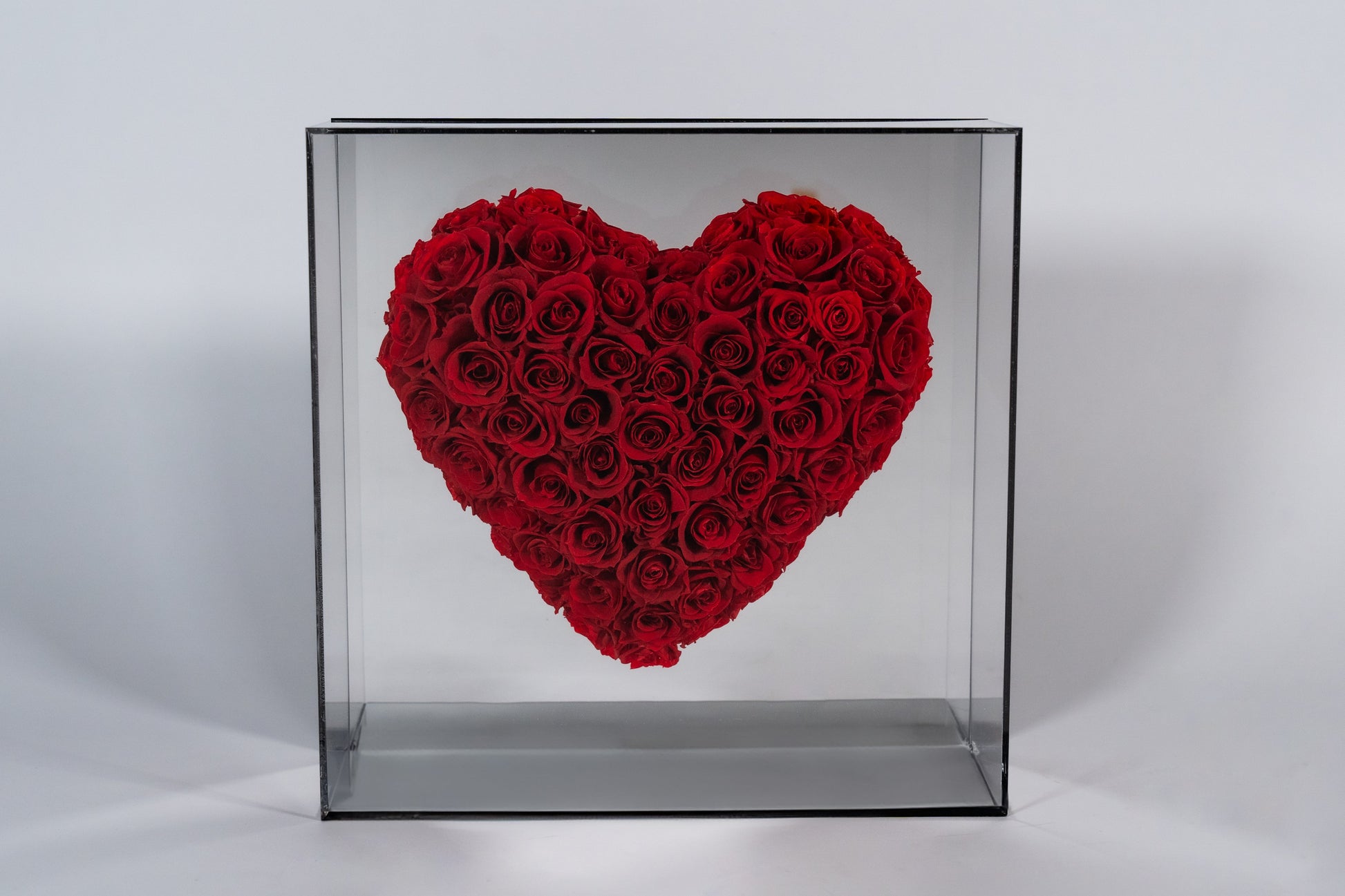 Πολυτελές Ακρυλικό Κουτί με Καθρέφτη – Προσθέτει κομψότητα και προστατεύει τα τριαντάφυλλα με διαστάσεις 30 cm * 30 cm .